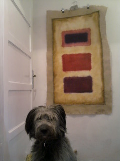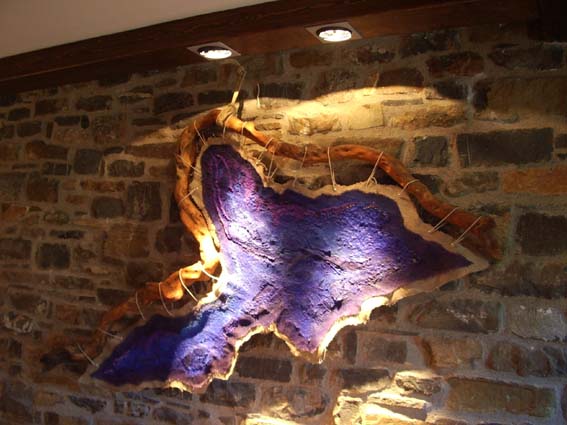 hand-sewn on to hessian and hung by a contorted root-system150 x 210cm